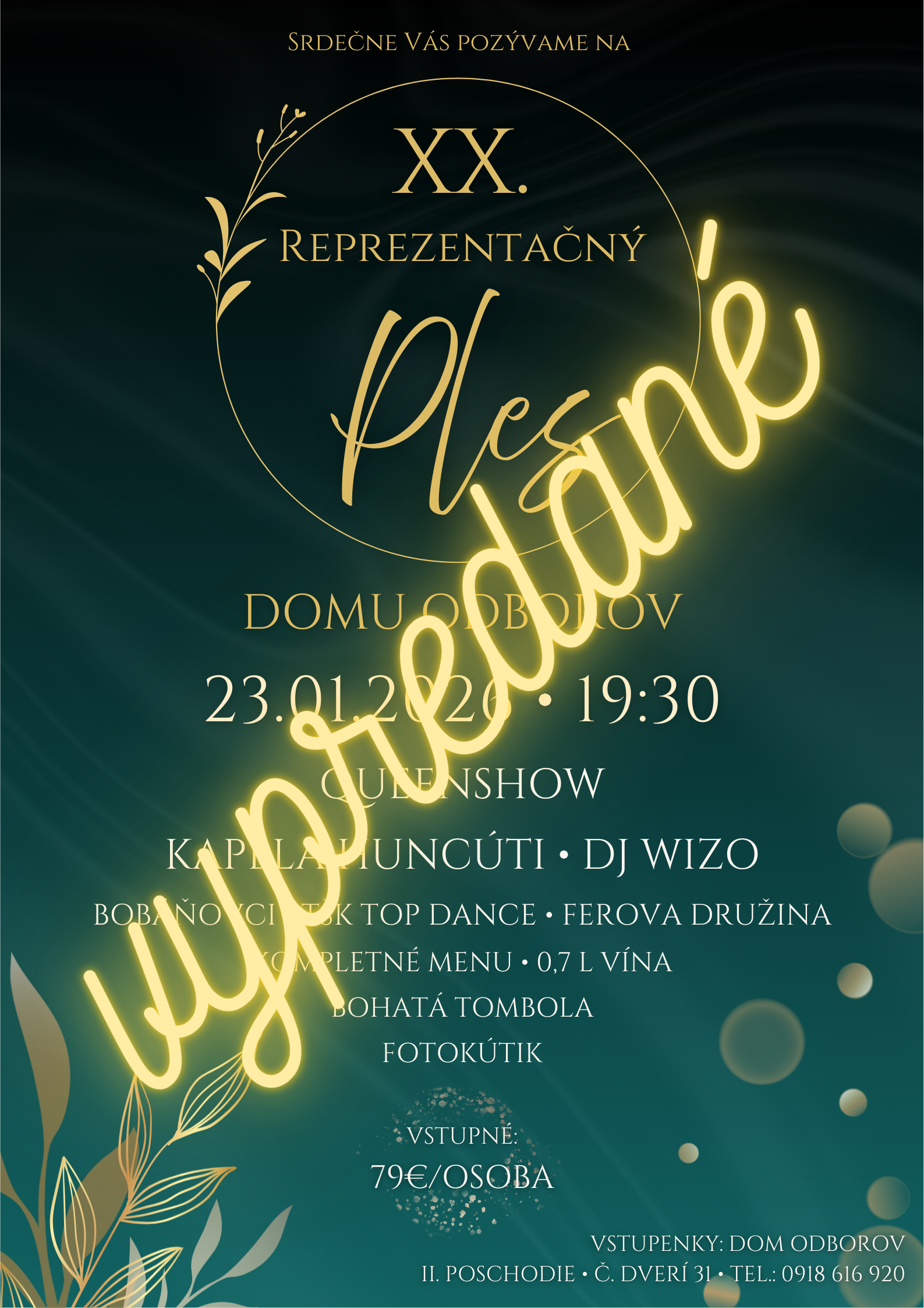 DOM ODBOROV ŽILINA Vás srdečne pozýva na XX. Reprezentačný ples, ktorý sa uskutoční dňa 23.01.2026 /piatok/ o 19,30 hod.